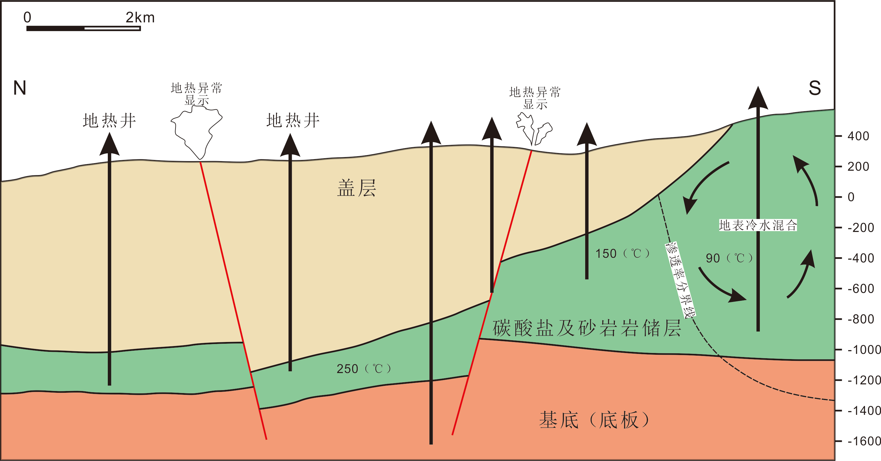 (5)變質的托斯卡納單元,有一套角閃巖-片麻巖以及云母片巖-千枚巖,這套地層構成了地熱系統的底板地層。