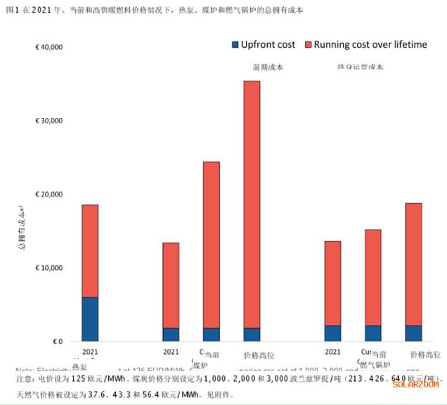 在涉及189歐元/MWh的高零售電價的情況下,熱泵的總成本比煤爐更有競爭力,但仍比燃氣鍋爐貴4,200歐元。