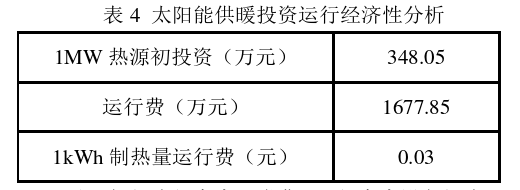 根據《太陽能供熱供暖工程技術規范》 (GB50495-2019),在寒冷地區太陽能供暖系統須采用間接供暖系統。太陽能間接供暖系統用于集中供暖熱源投資運行經濟性分析詳見表4: