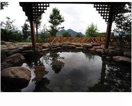 貴州黃平浪洞溫泉風(fēng)景黃平浪洞森林溫泉度假山莊位于貴州省黔東南州黃平北面浪洞鄉(xiāng)溫水塘村,處于兩州一市交界(黔東南州、黔南州和遵義市),更是處在舞陽河國家級風(fēng)景名勝區(qū)范圍內(nèi),具有較好好區(qū)位優(yōu)勢。四周依山傍水,原始植被保存良好,是天然的氧吧。浪洞溫泉在100平方米范圍內(nèi)由5~7年泉眼平地,噴涌而出,日流量每天1000噸左右。溫泉無色,甜味,井口水溫49℃,根據(jù)SI02含量計算,推測靠巖面附近溫度可達60℃,按國家礦泉水溫度分類標準,為高熱礦泉水(42-100℃)。該溫泉地?zé)崴?/a>化學(xué)類型為HCO3-NA,屬弱堿性(PH=8),低硬度、低礦化度的極軟水,符合飲用水標準。